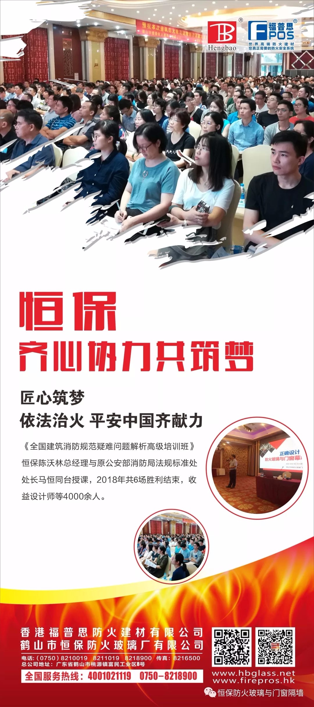鶴山市恒保防火玻璃廠有限公司2018年與“中國建筑設(shè)計研究院人才培訓(xùn)中心”原公安消防局法制標(biāo)準(zhǔn)處處長馬恒一起分別廣東深圳、湖南長沙、湖北武漢、廣西南、山東濟(jì)南、廣東廣州,共同舉辦了6場《全省建筑消防規(guī)范疑難問題解析高級培訓(xùn)班》,所到之處深受到設(shè)計師們的歡迎,受益設(shè)計師達(dá)4000多人次。